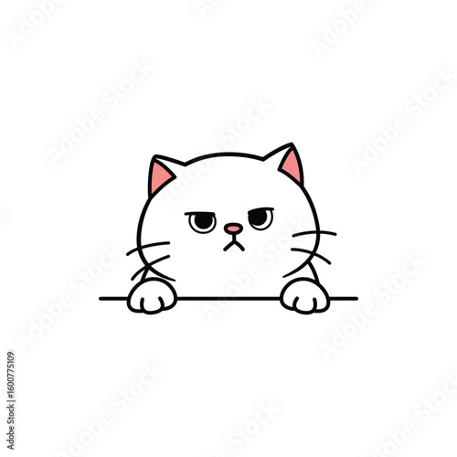 © Totostarkk9456, Obraz premium Cute grumpy white cat peeking over a ledge, vector illustration