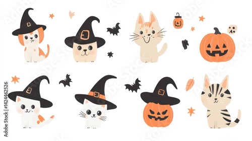 © itol, Naklejka premium Cute Halloween cats and pumpkins