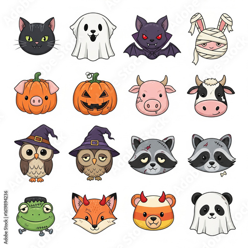 © alimu, Fototapeta premium Cute Halloween Characters Clipart Set | Spooky Animal Illustrations