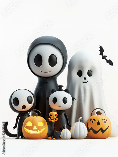 Obraz premium Cute Halloween Characters with Pumpkins and Ghosts
