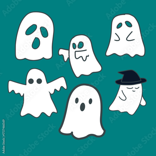 © wipsartwork, Obraz premium Cute Halloween Ghosts