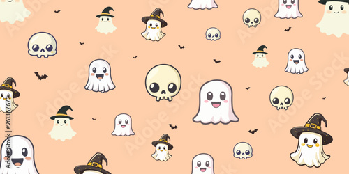Obraz premium Cute Halloween pattern on a bright colored background.