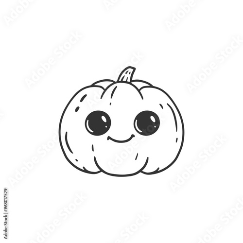 © Alina, Fototapeta premium Cute halloween pumpkin isolated on white. Halloween pumpkin head coloring page for kids. Black and white illustration. Vector illustration.