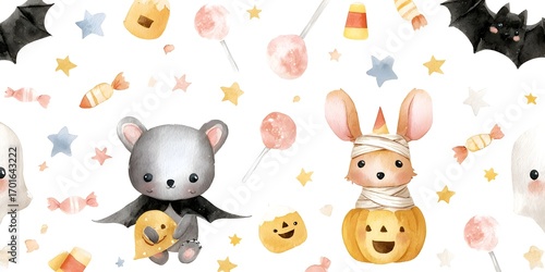 Obraz premium Cute Halloween themed animals in playful costumes