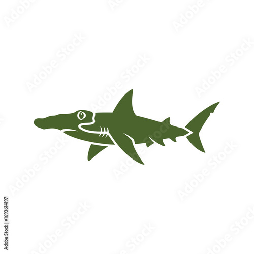 Fototapeta premium Cute hammerhead shark cartoon illustration ocean marine life underwater...