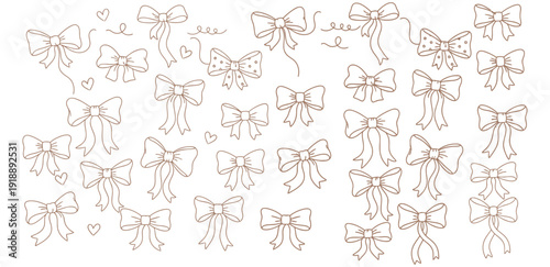 Obraz premium Cute hand-drawn bow doodles in a charming sketch style, perfect for festive decorations and creative projects