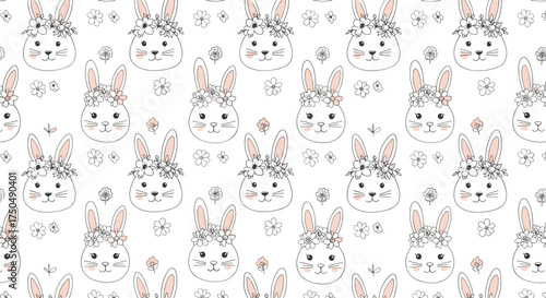 Obraz premium Cute hand drawn bunny faces seamless pattern.