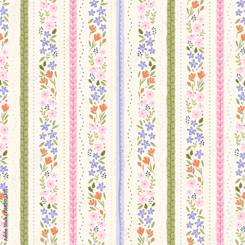 Fototapeta premium Cute hand drawn ditsy seamless pattern, lovely floral background, great for...