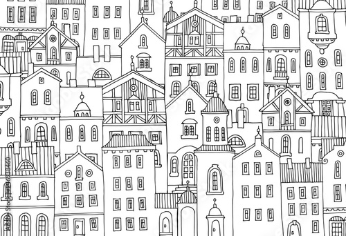 © Flavijus Piliponis, Fototapeta premium Cute hand drawn houses with windows