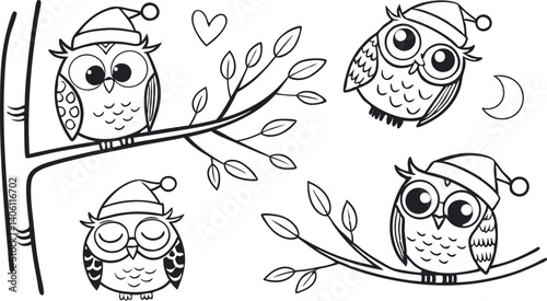 Fototapeta premium Cute Hand-Drawn Owl Vector Set – Line Art EPS Clipart Collection.eps