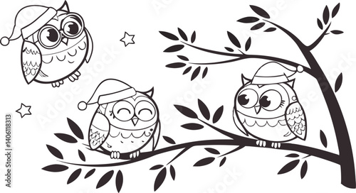 Fototapeta premium Cute Hand-Drawn Owl Vector Set – Line Art EPS Clipart Collection.eps