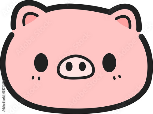 Obraz premium Cute hand drawn pink pig face cartoon doodle illustration