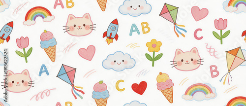 © bangwee, Obraz premium Cute Hand Drawn Space Crayon Pattern for Kids