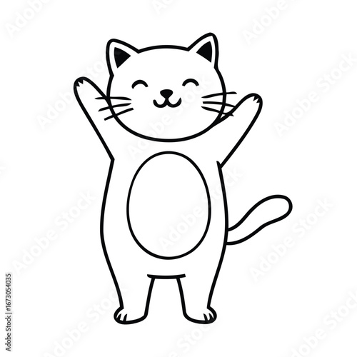 © AllyRauf, Obraz premium Cute Happy Cat Standing with Paws Up Black and White Illustration