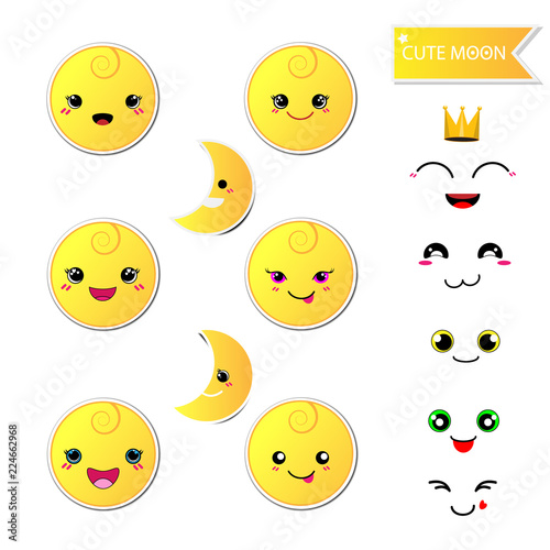 © wiyada138, Fototapeta premium cute happy moon with smiley face on white