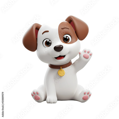 © A-STOCK, Naklejka premium Cute Happy Puppy Waving – Adorable 3D Cartoon Dog Isolated on Transparent Background, Playful and Fun, PNG format