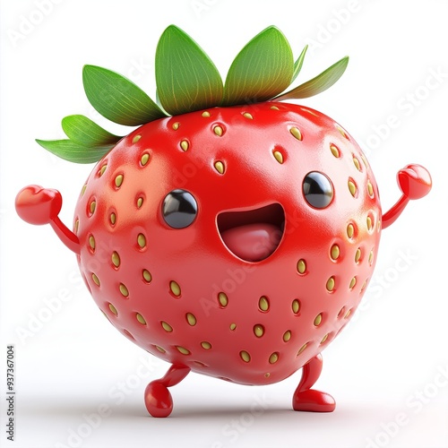© Mihai Zaharia, Obraz premium Cute Happy Strawberry Isolated on White Background, Cartoon Character - Mascot