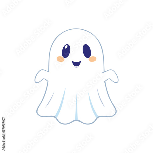 © Designer_Shimul, Fototapeta premium Cute happy white ghost with blue eyes and rosy cheeks smiling