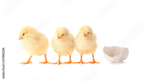© Pixel-Shot, Obraz premium Cute hatched chicks on white background