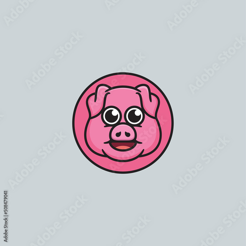 Fototapeta premium Cute Head Pig Mascot Logo Design