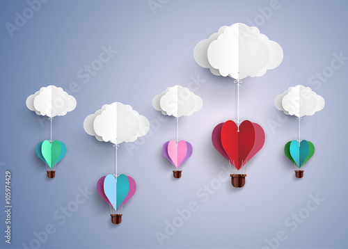© kengmerry, Naklejka premium Cute Heart Balloons and Clouds in Minimal Sky