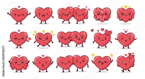 Fototapeta premium Cute Heart Characters and Love Emojis - Romantic and Valentine's Day Expressions