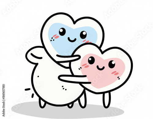 © Supachai Seetarbud, Obraz premium Cute heart characters hugging