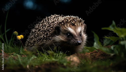 Fototapeta premium Cute hedgehog in nature, small mammal with bristled fur generated by AI