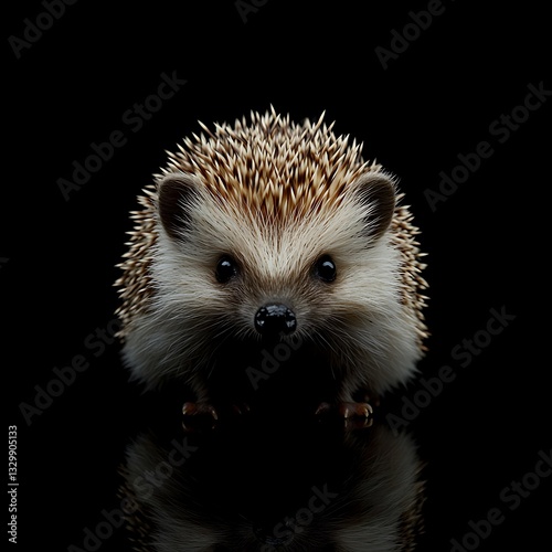 © Easthetic, Obraz premium Cute hedgehog on black background.