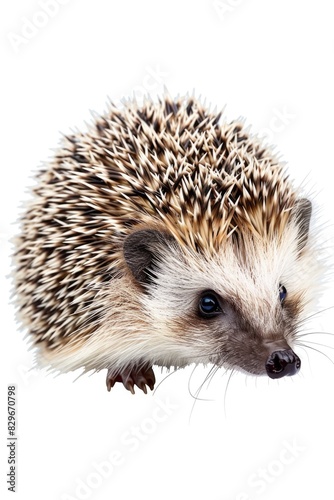 Fototapeta premium Cute hedgehog standing on a white backdrop. Ideal for animal-themed designs