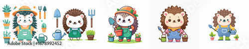 © sarah16blakeyxh2, Naklejka premium cute hedgehog vector gardening