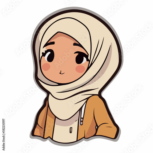 Obraz premium Cute hijabi girl cartoon style vector illustration