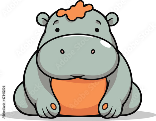 © Ehtisham, Obraz premium Cute hippo cartoon character sitting on orange ball vector illustration.