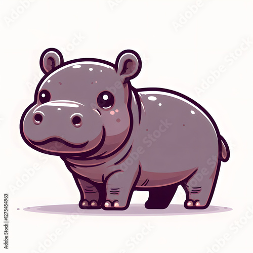 Naklejka premium Cute Hippo Illustration: An adorable cartoon illustration of a baby hippo,...