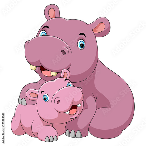 Naklejka premium Cute hippo mother with baby hippo