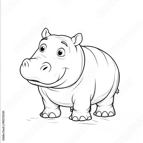 © warunthorn, Obraz premium Cute Hippo Outline.