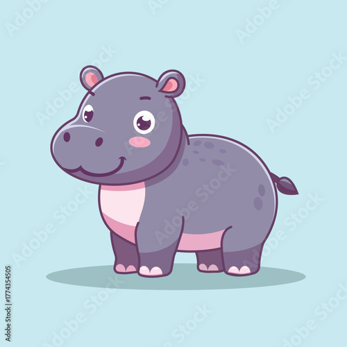 © Mahandika, Fototapeta premium Cute Hippo Standing Cartoon Vector Icon Illustration. Animal Nature Icon Concept Isolated Premium Vector. Flat Cartoon Style