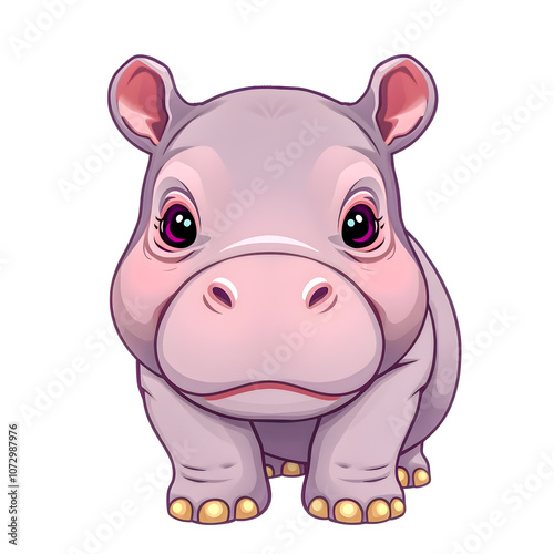© wannasak, Naklejka premium Cute hippopotamus isolated on white background. Vector illustration.