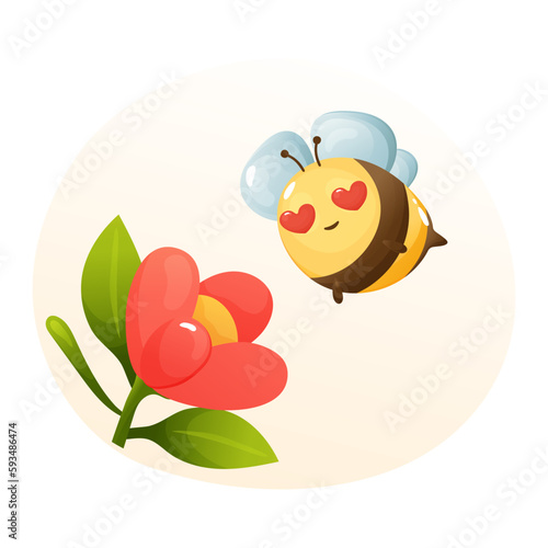 © Superpuperstar, Fototapeta premium Cute honey bee and flower