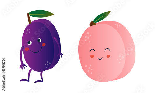 Fototapeta premium Cute Humanized Fruit with Smiling Face Vector Set