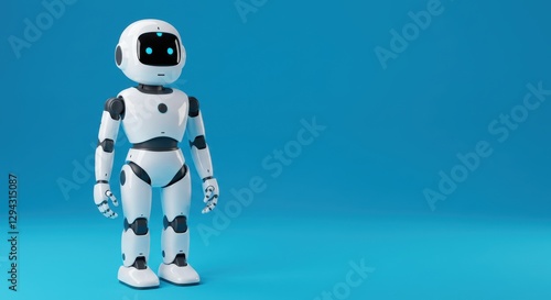 Fototapeta premium Cute humanoid robot standing on a blue background in futuristic setting