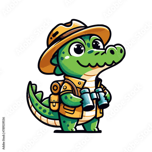 © LOGISTOCK, Fototapeta premium cute icon character adventure crocodile