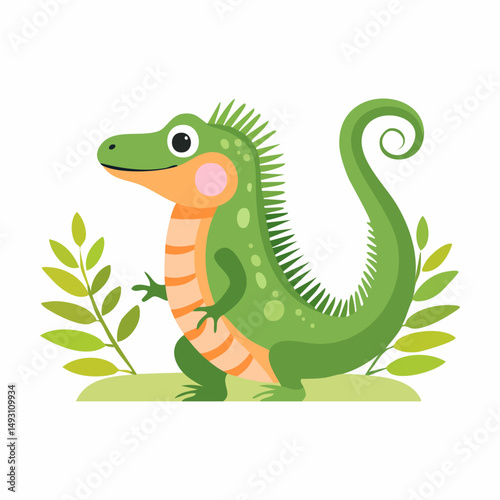 Fototapeta premium Cute Iguana in Simple Vector Style – Minimal Reptile Illustration with Flat...