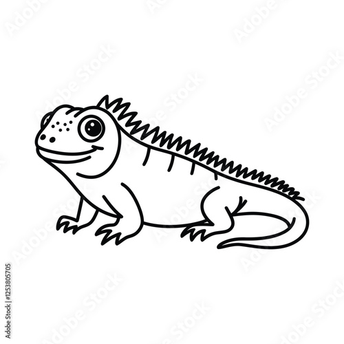 Fototapeta premium Cute Iguana Outline – Cartoon Reptile Vector Illustration