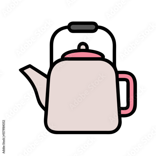 © MdShafikul, Obraz premium Cute illustrated teapot with pink lid and handle and gray grip
