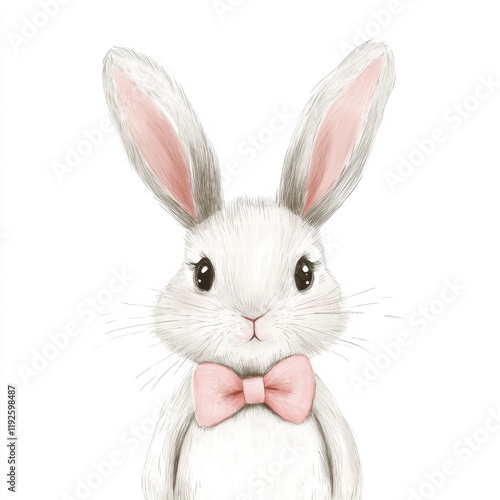 © Anat art, Obraz premium Cute illustrated white rabbit wearing a pink bow tie standing against a plain background. Generative AI