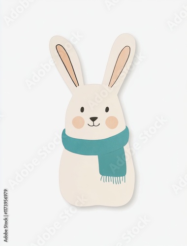 © Ilie, Fototapeta premium Cute illustration of a bunny wearing a teal scarf with a cheerful expression.