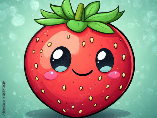 Obraz premium Cute Illustration of a Happy Strawberry With Big Eyes and a Charming Smile on...