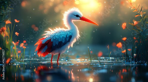 © Adja, Fototapeta premium cute illustration of a stork perched