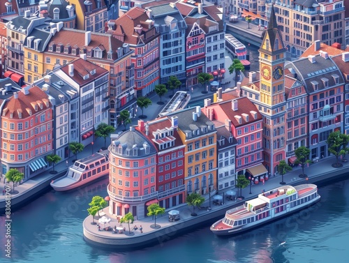 Obraz premium Cute isometric 3D render of Zurich, capturing the famous places and...